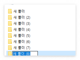 이 방법은 노가다성 수동 생성하는 방법이랑 비슷한것이라 추천은 드리지 않지만 단축키 활용 측면에서 알아놓으시면 좋습니다. 아래 사진에서 보이는 화면과 같이 하나하나 새폴더 생성 후 이름을 변경하는 방법 입니다.