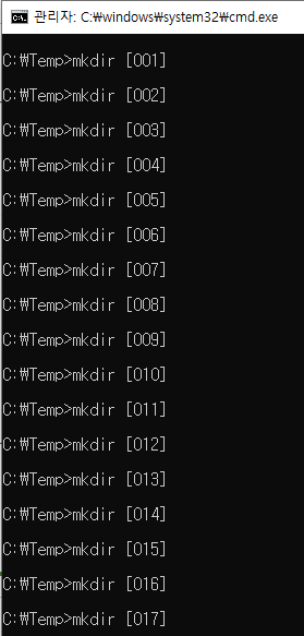 예제) "Folder1", "Folder2", "Folder3" 라는 이름의 폴더를 한번에 생성