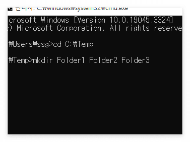 명령어 : cd C:\Temp (생성하고자하는 폴더에 접근)